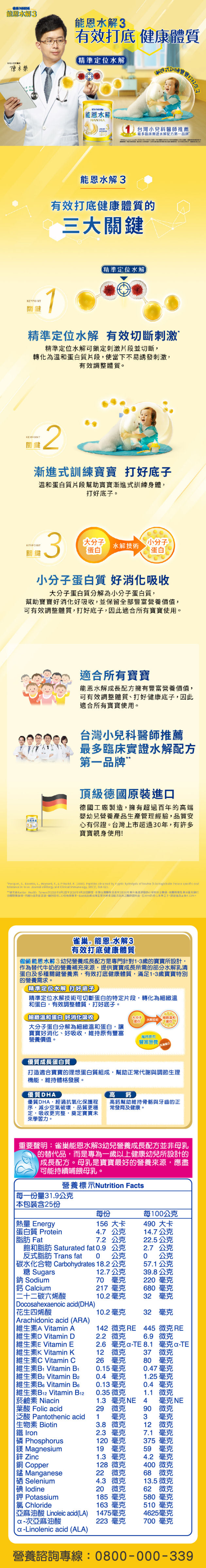 奶粉飲品 幼兒奶粉 雀巢HA3水解800G*6罐/箱 -