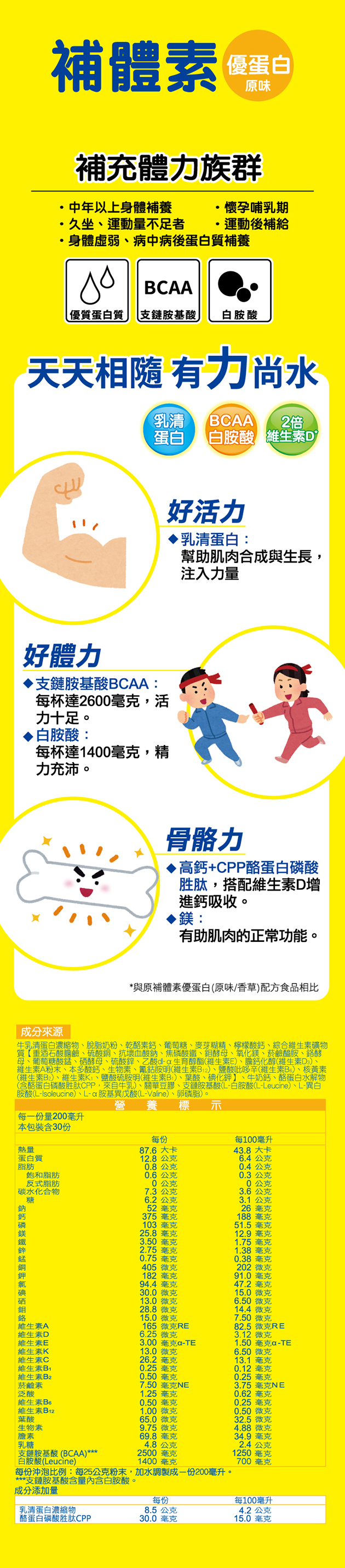 奶粉飲品 成人奶粉/飲品 補體素優蛋白原味750G*4罐 -