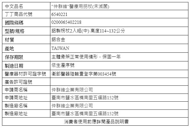 鋁製柺杖2入組(中) 高度114~132公分