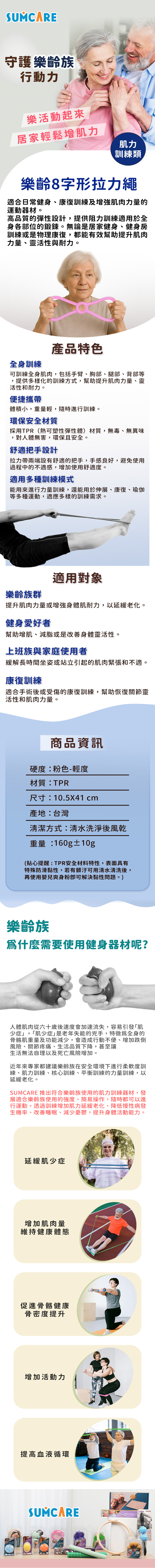 樂齡照護 生活輔具 Sumcare樂齡8字形拉力繩粉紅色 -