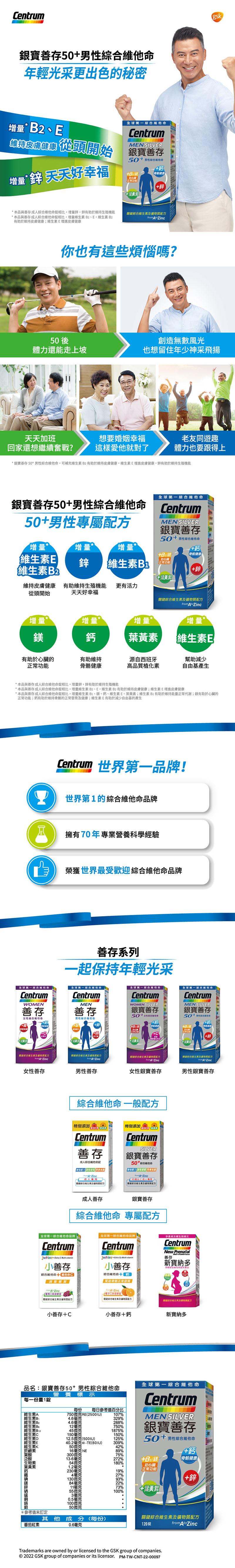營養保健 成人營養保健品 銀寶善存50+男性綜合維他命120T -