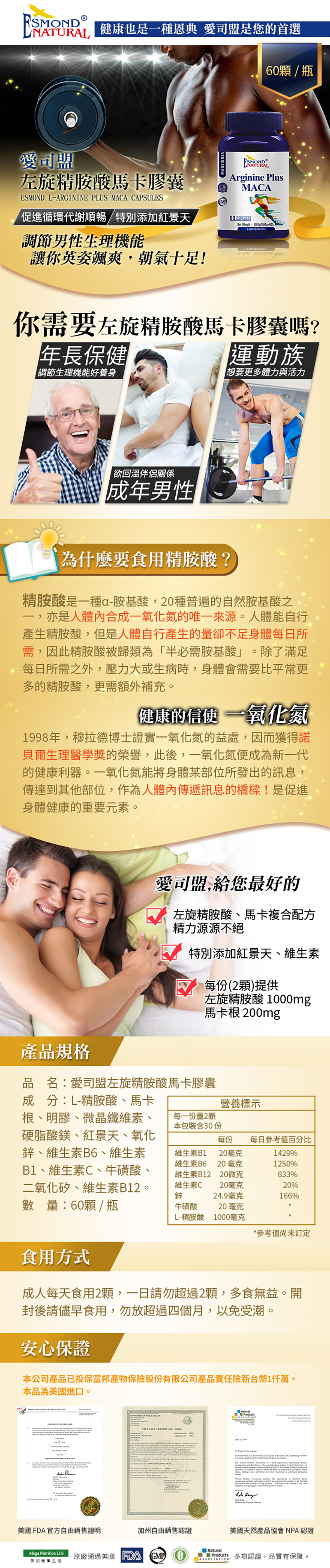 營養保健 成人營養保健品 愛司盟左旋精胺酸馬卡膠囊60顆 -