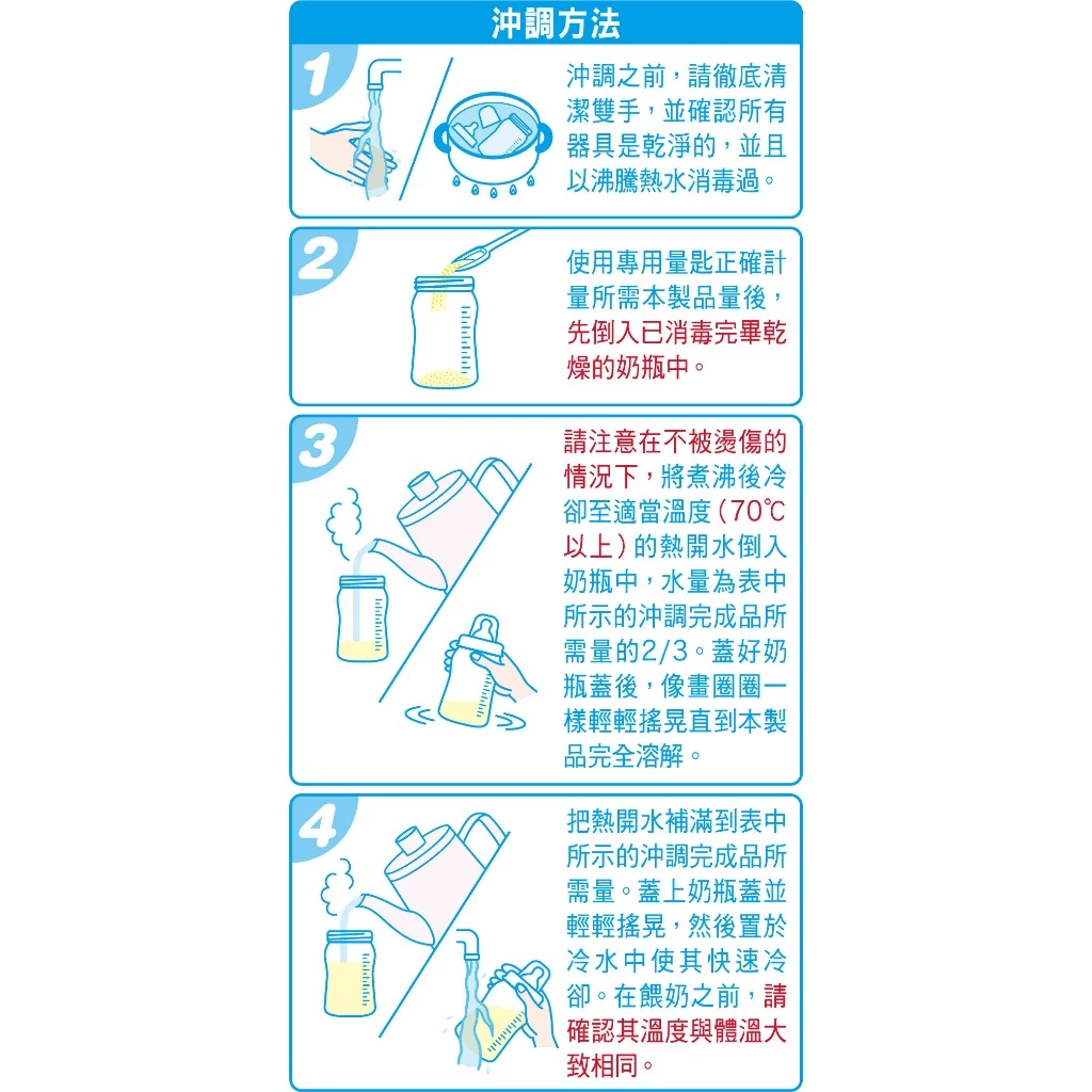- 當母親無法餵哺母乳時,請遵照醫護人員及營養師之建議,來決定是否需要選用嬰兒配方食品,餵哺您的寶寶。