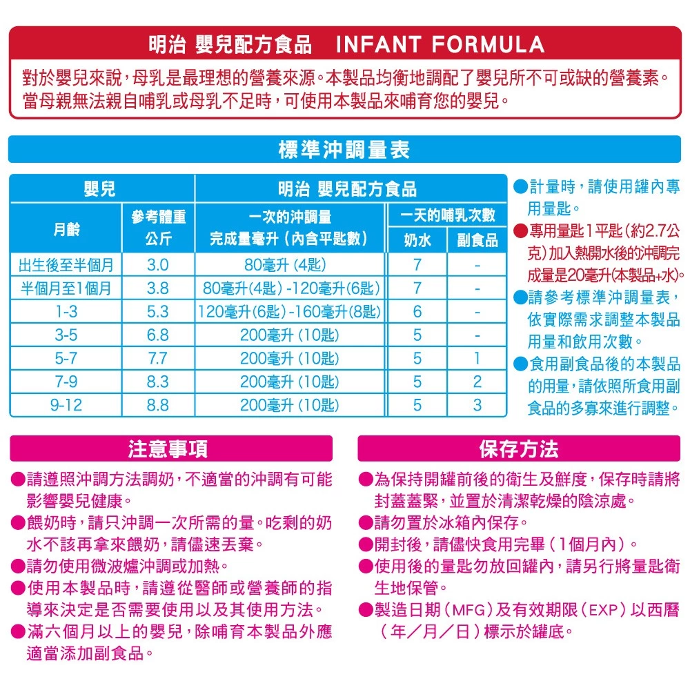奶粉飲品 嬰兒配方奶粉 明治嬰兒配方800g*8罐/箱 -