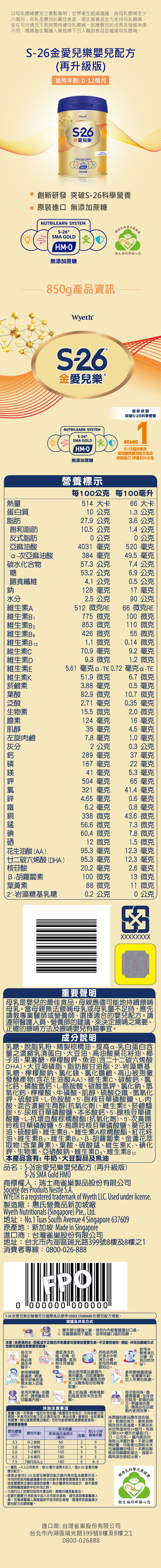 奶粉飲品 嬰兒配方奶粉 惠氏金愛兒樂HMO嬰兒850G*6罐/箱 -