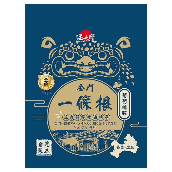 成份 : 金門一條根萃取、葡萄糖胺鹽酸鹽、薄荷腦、薄荷精油、尤加利精油、薰衣草香精油、香精/精油、貼布基劑。