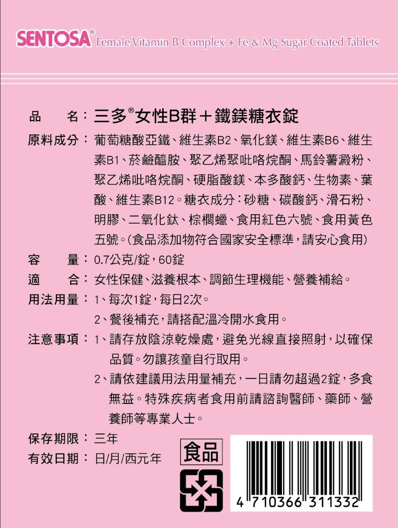 營養保健 成人營養保健品 三多女性B群PLUS鐵鎂錠60T -